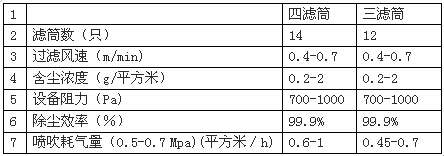 一般為負壓作業,含有粉塵的氣體有進風口進入濾筒除塵器內,在濾芯內負壓的作用下,經過濾芯過濾,進入潔凈室從出風口排出。當粉塵在濾料表面上越積越多,阻力越來越大,當達到設定值時,脈沖閥打開,壓縮空氣直接噴入濾筒中心,對濾筒進行順序脈沖清灰,使其恢復低阻運行。含有粉塵的氣體進入過濾室,比較大的粉塵顆粒直接落到灰斗,含有粉塵的氣體經過濾芯凈化,粉塵會粘附在濾芯的表面,干凈的氣體經過濾芯口到達靜氣室,在有引風機經煙筒排入大氣中。當濾芯便面的粉塵不斷的增加,導致除塵器內的阻力增加,當阻力增加到一定的數值時,控制儀會發出信號,進行程序的控制,這時脈沖閥會逐個打開,壓縮空氣通過噴口對濾芯進行噴吹清灰,在壓縮空氣的噴吹下,附在濾芯上的粉塵層快速的脫離濾芯落入灰斗中,在由螺旋輸送機或卸灰閥直接排出。