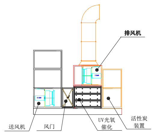 最后,通過三重處理的氣體經風機抽排到大氣中。
