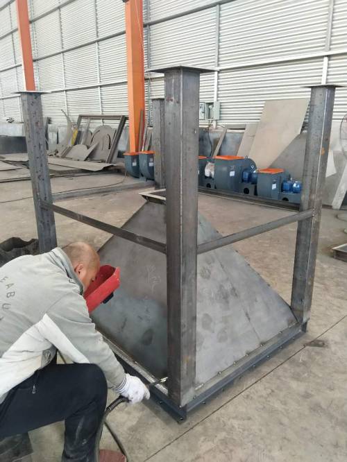 灰斗由上灰斗和下灰斗兩體連接而成,其壁板均采用4mm厚鋼板焊制,外表均焊有足夠強度的角鋼為加強筋。灰斗下部還焊有大孔格柵網。檢修換袋時可以從上方將濾袋直接放入灰斗,落在板柵網上,然后從灰斗從孔門處即可統一取出,既減輕工人勞動強度,又實現了清潔操作,深受檢修人員的歡迎。